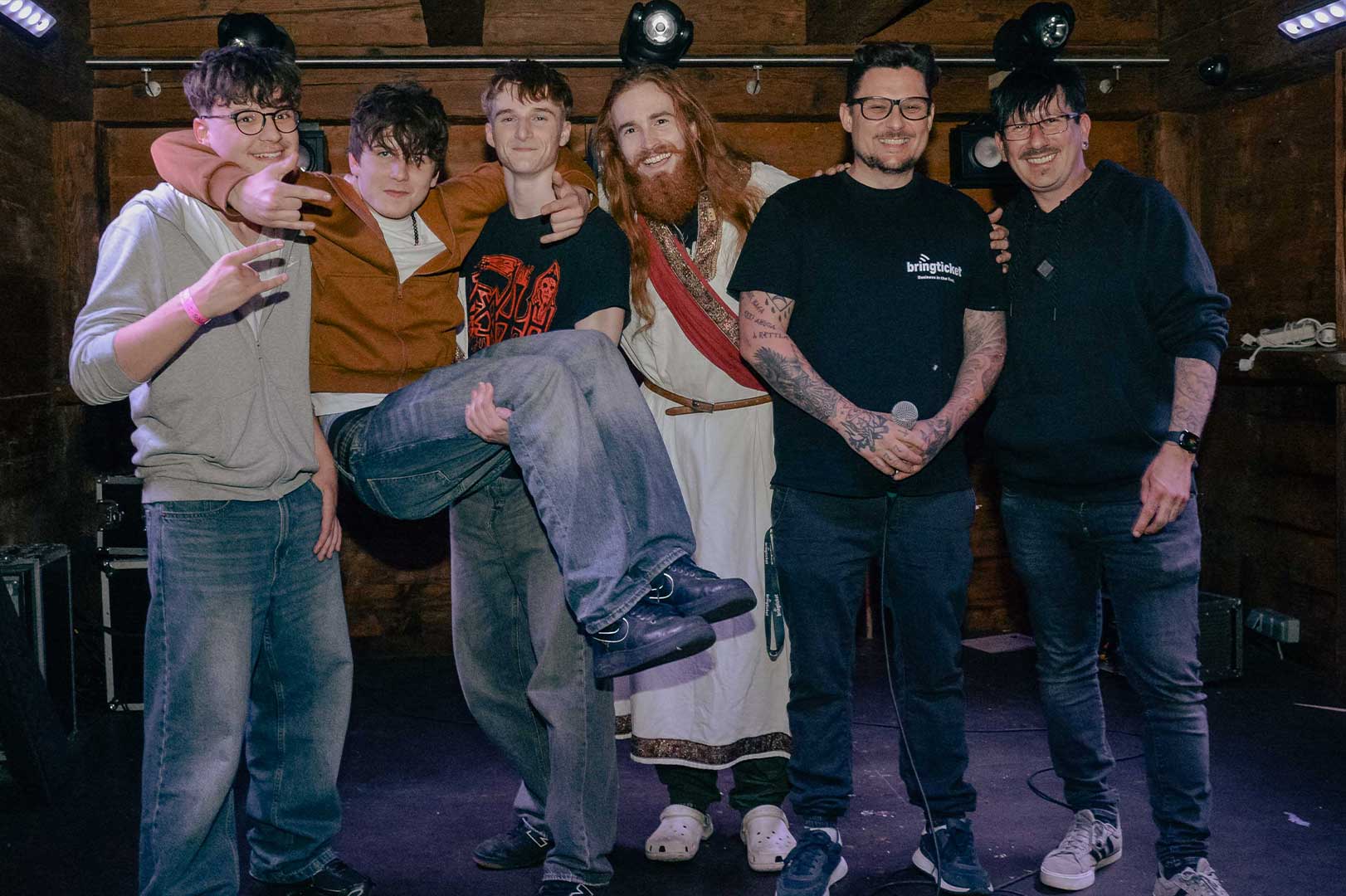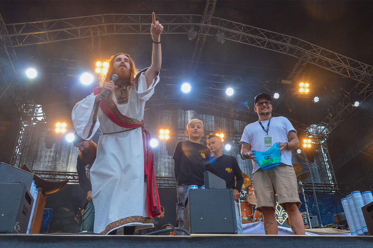 More punctual than a German towel on a sunbed at an all-inclusive resort, the Area 53 Jesus landed precisely at 10:00 AM on Saturday, descending from a height of 35 meters in front of the legendary Jesus Chapel at the Deluxe campsite – all in front of hundreds of sunburn-disguised metalheads. What started years ago as a joke by the organizers has now become a cult tradition and a firmly established ritual of the festival – meant to be taken, of course, with a wink. Around 1,000 metal fans gathered for the traditional headbanger march to the morning pint at the festival grounds – true to style with beer cans in hand and legendary gestures.